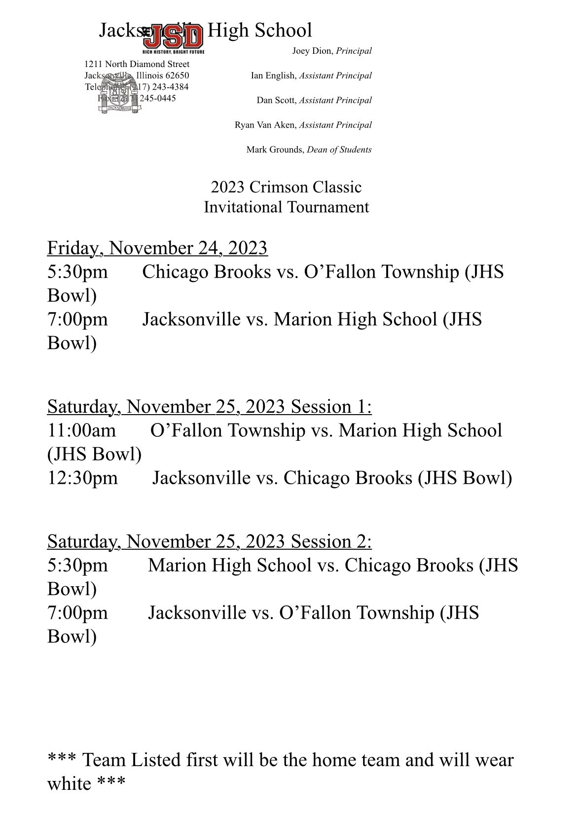 Crimson Classic Schedule 2024 Jacksonville Jacksonville Crimson Classic schedule set: Jacksonville boys’ basketball fans will get their first look at first-year head coach Michael Cameron’s team as JHS hosts the 2023 Crimsons Classic Nov. 24-25 at The JHS Bowl. Jacksonville . As the venerable Jacksonville Symphony edges closer to its 75th year of operation, the future is looking brighter than ever for Northeast Florida’s premier cultural institution. With dozens of .